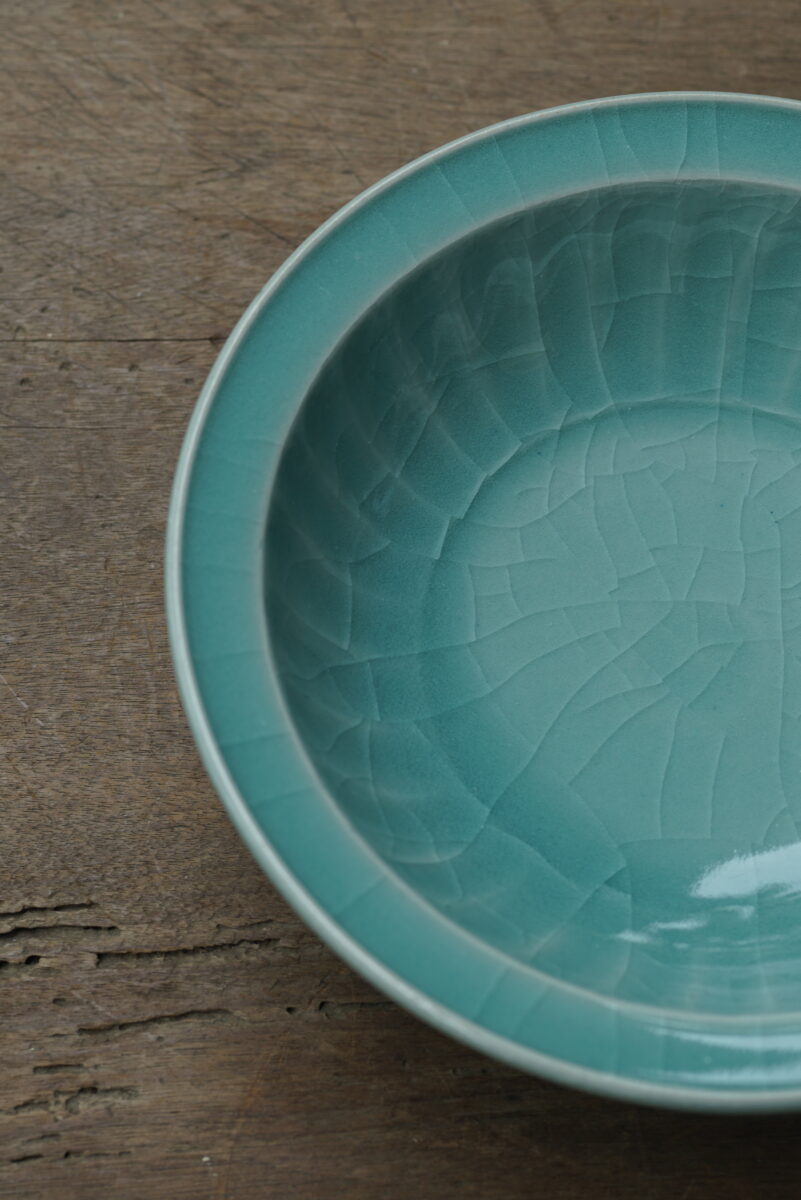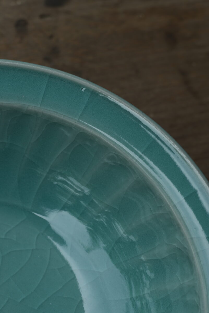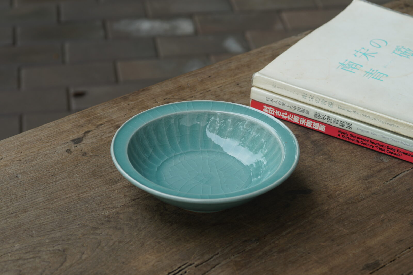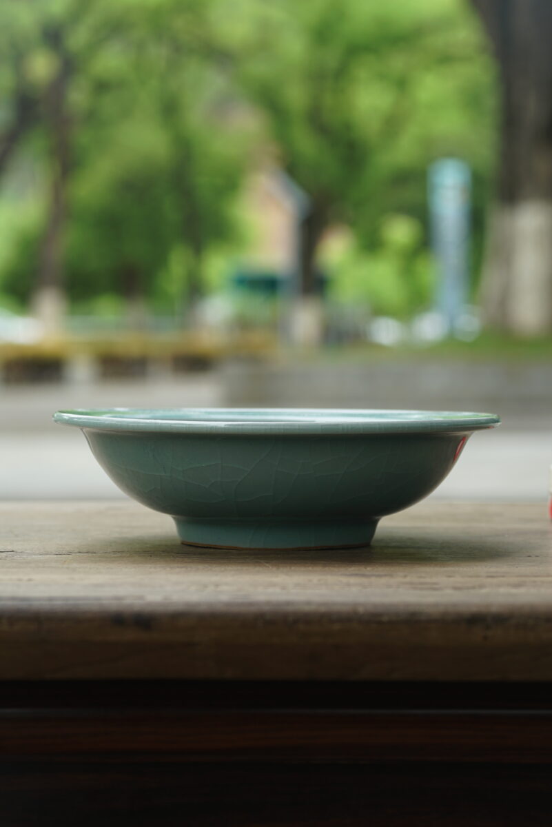 采用龙泉当地优质的朱砂泥和天然原矿釉料,龙窑柴烧。纯手工制作,工艺精良。器型来源于宋元时期龙泉窑经典器。