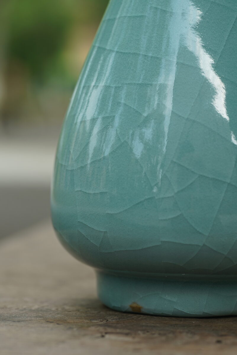 采用龙泉当地优质的朱砂泥和天然原矿釉料,纯手工制作,工艺精良 。其灵感来源于北宋龙泉窑高级立件。