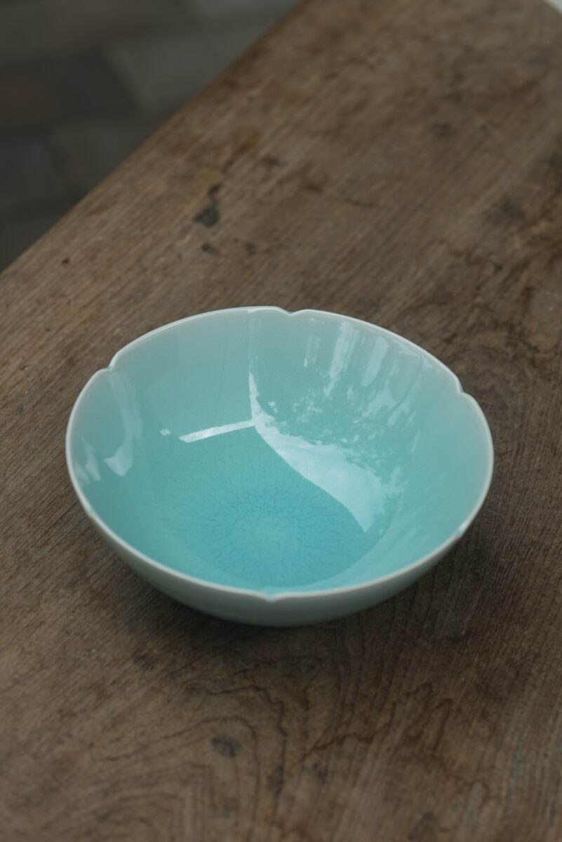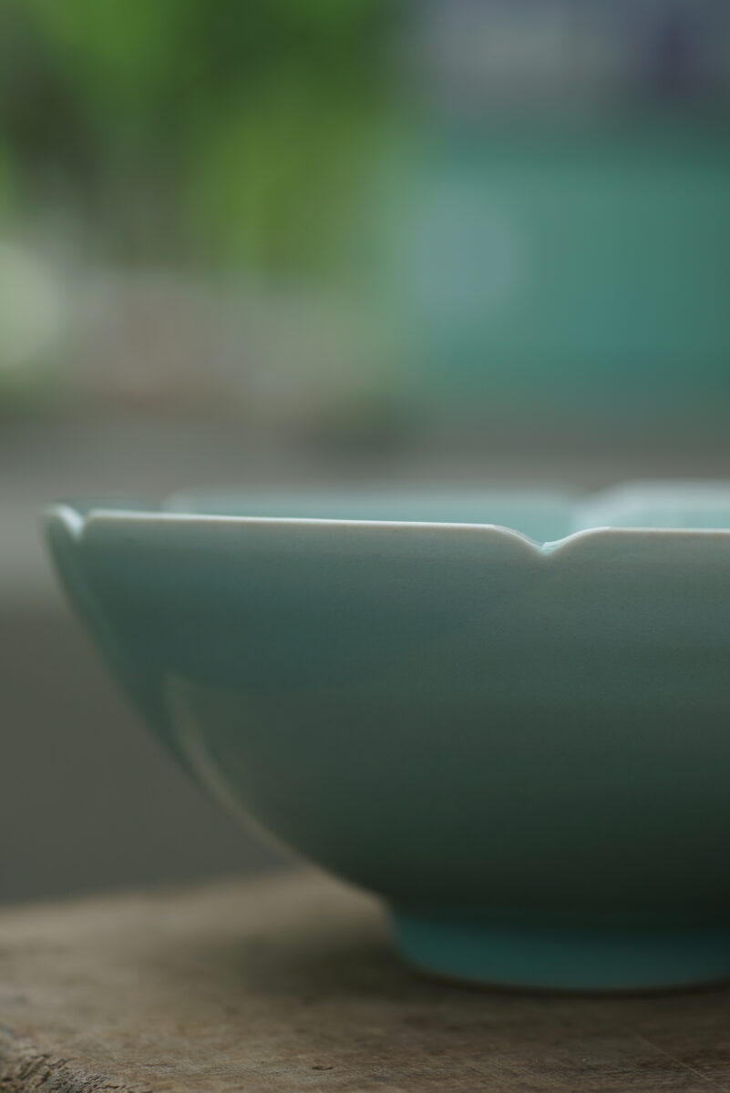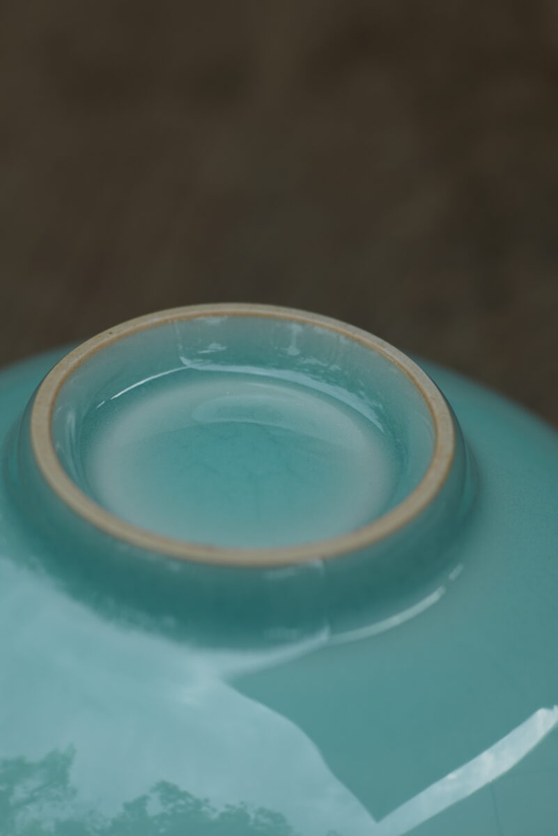 这件复刻器采用龙泉当地优质的朱砂泥和天然原矿釉料,工艺精良.器型灵感来源于南宋龙泉窑高级实用器皿。