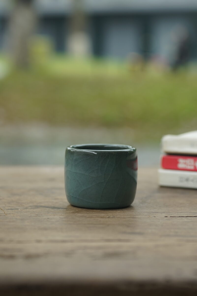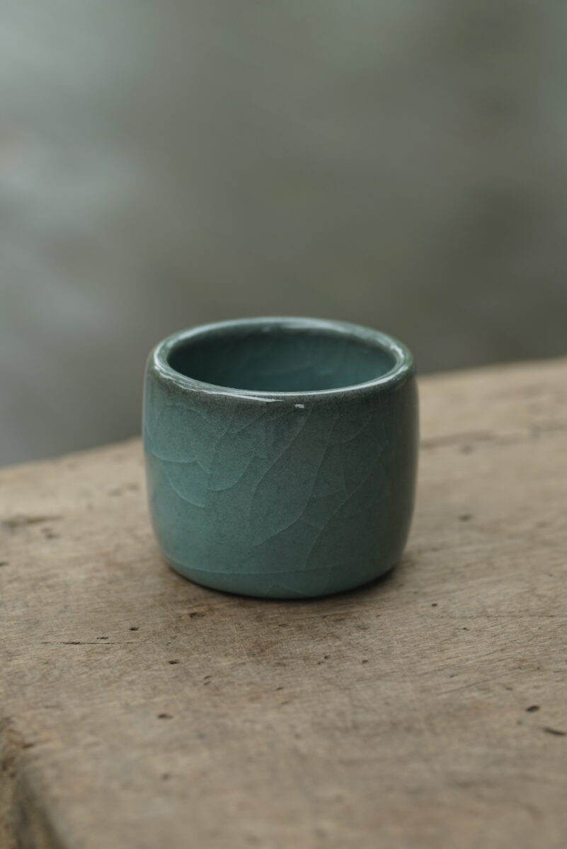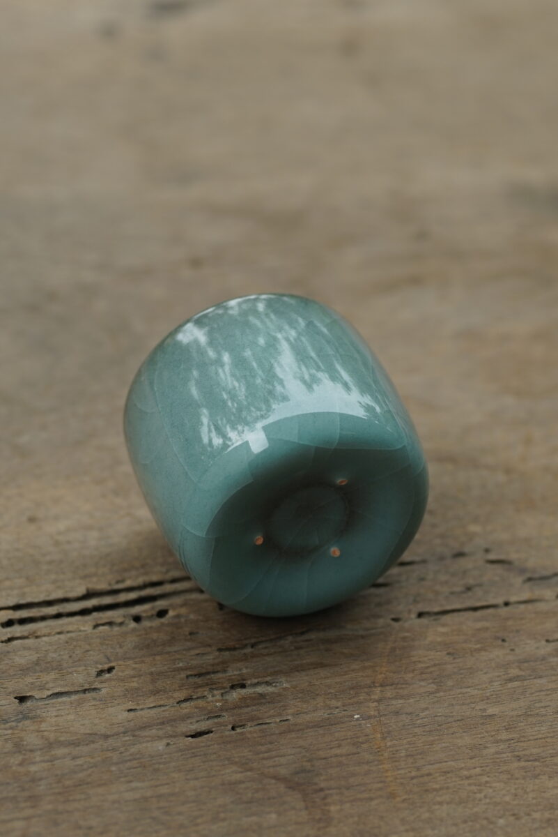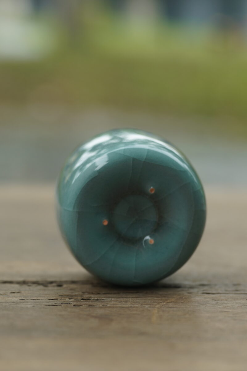 采用龙泉当地优质的铁胎泥和天然原矿釉料,底部支钉高温烧制而成。