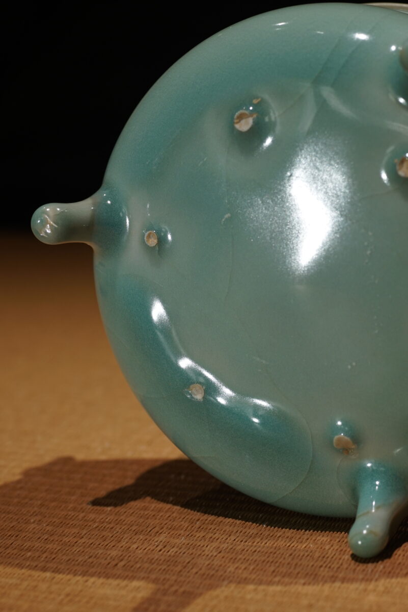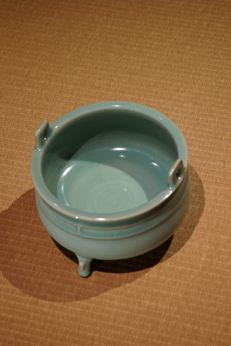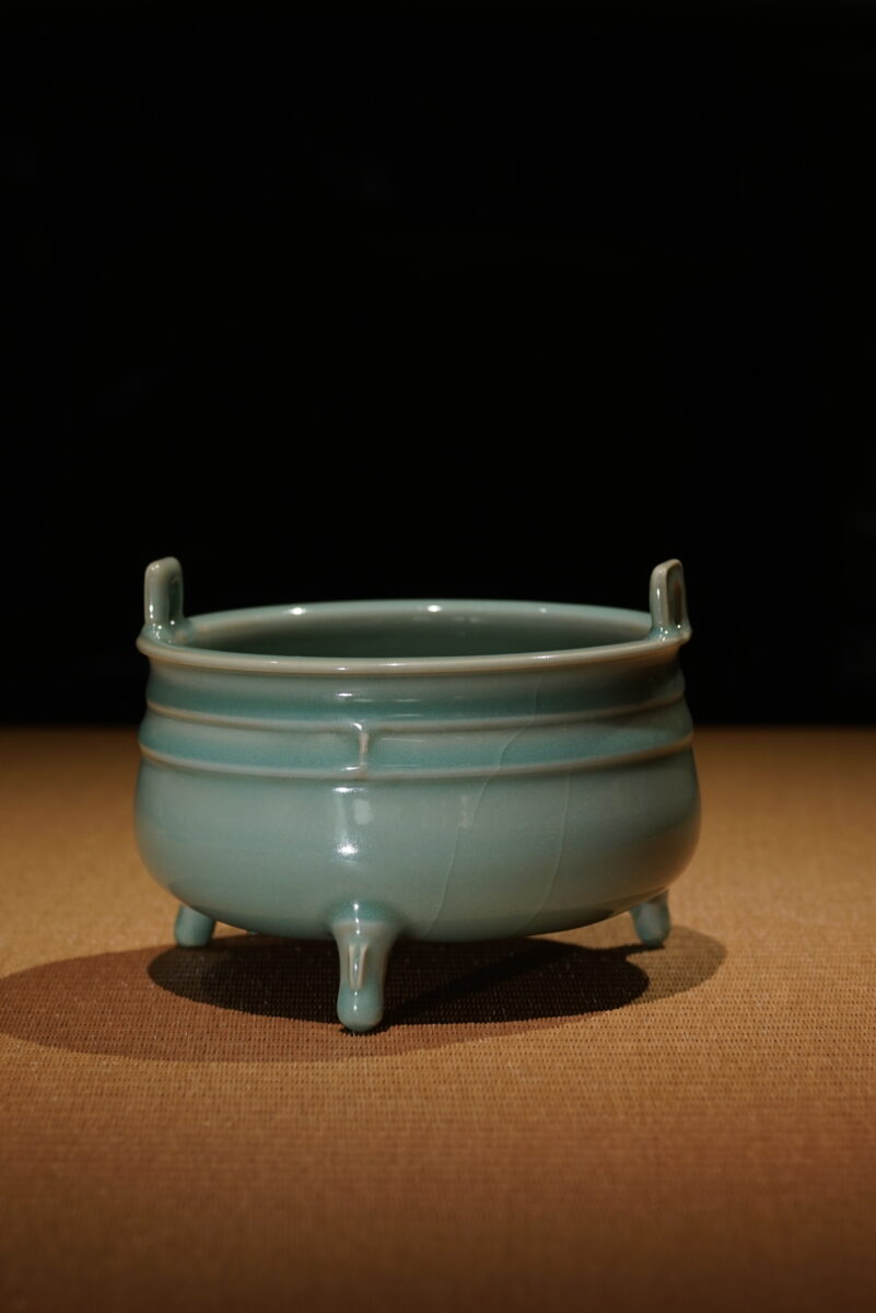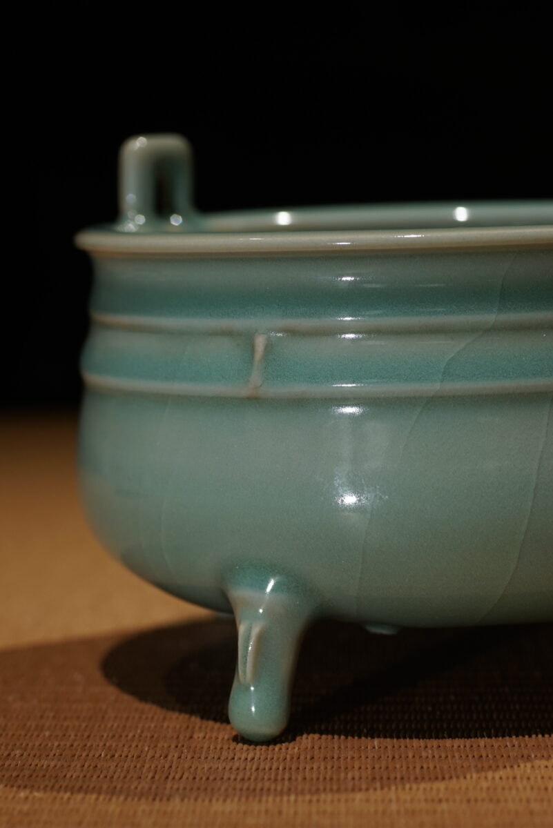 高过耳10.5cm 外口径14cm采用龙泉当地优质的朱砂泥和原矿釉料,高温烧制而成,传统龙窑柴烧。纯手工制作,工艺精良。器型灵感来源于南宋官窑宫廷用瓷。