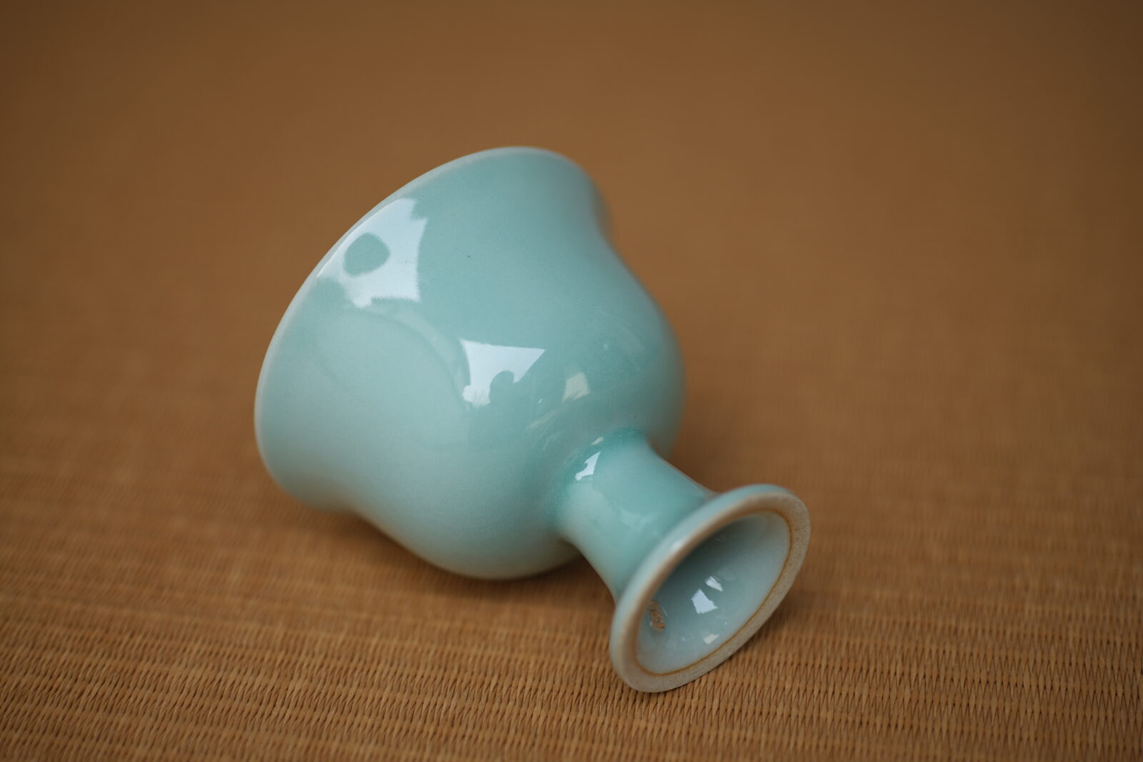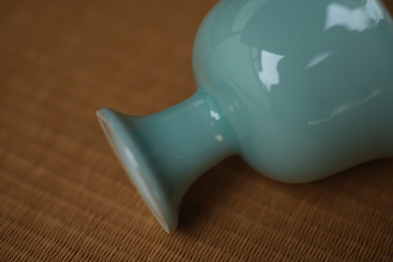 器型灵感来源于宋元时期龙泉窑经典器,光素极简,采用龙泉当地优质的胎泥料和天然原矿釉料高温烧成,形制优美,工艺精良。