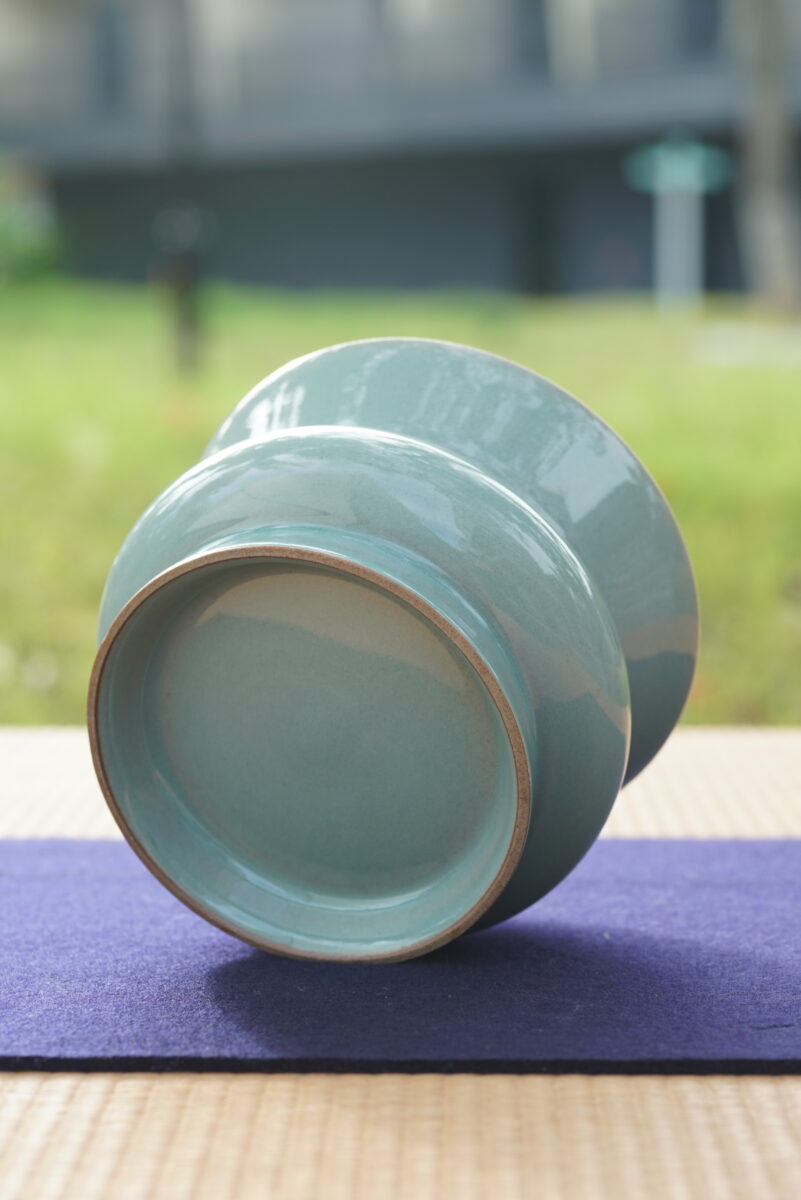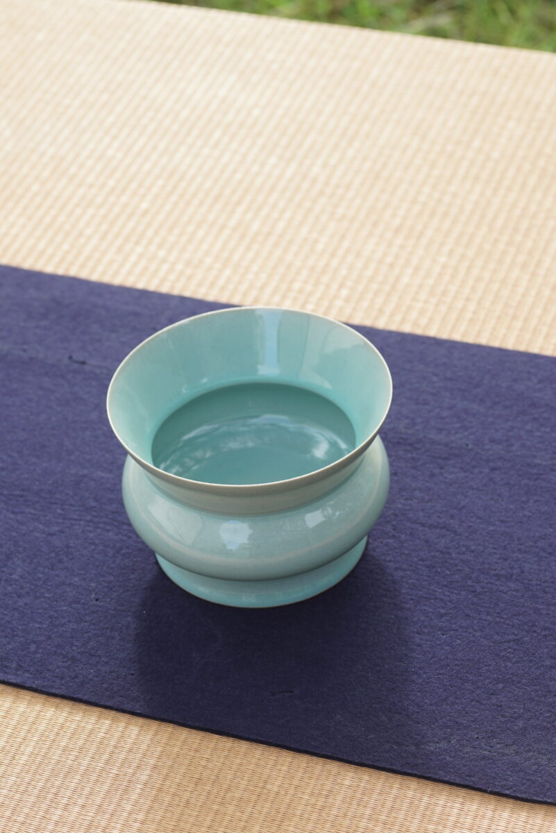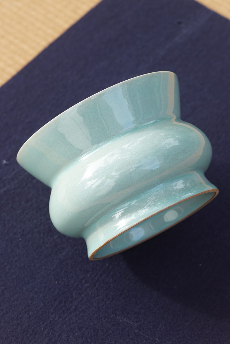 采用龙泉当地优质的铁胎泥和原矿釉料,高温烧制而成。纯手工制作, 工艺精良。其灵感来源于南宋龙泉窑高级实用器皿。