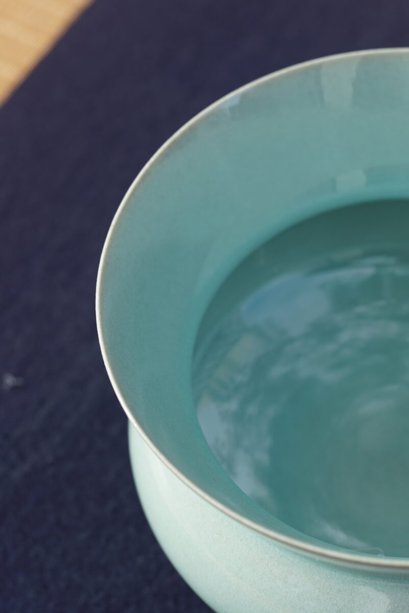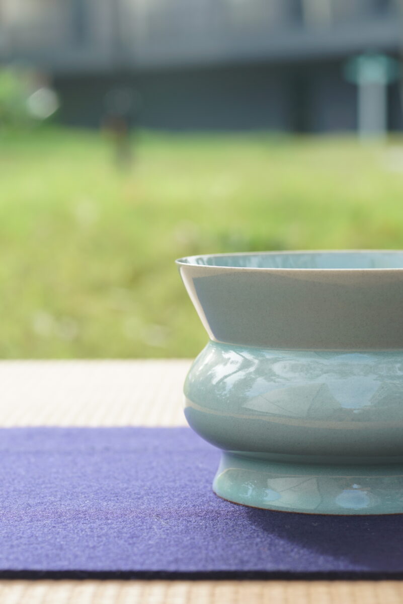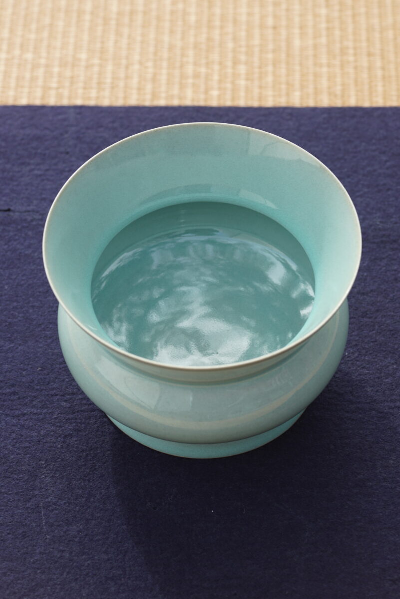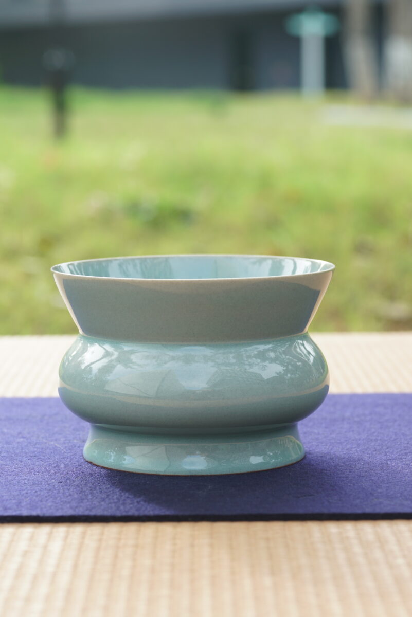 采用龙泉当地优质的铁胎泥和原矿釉料,高温烧制而成。纯手工制作, 工艺精良。其灵感来源于南宋龙泉窑高级实用器皿。